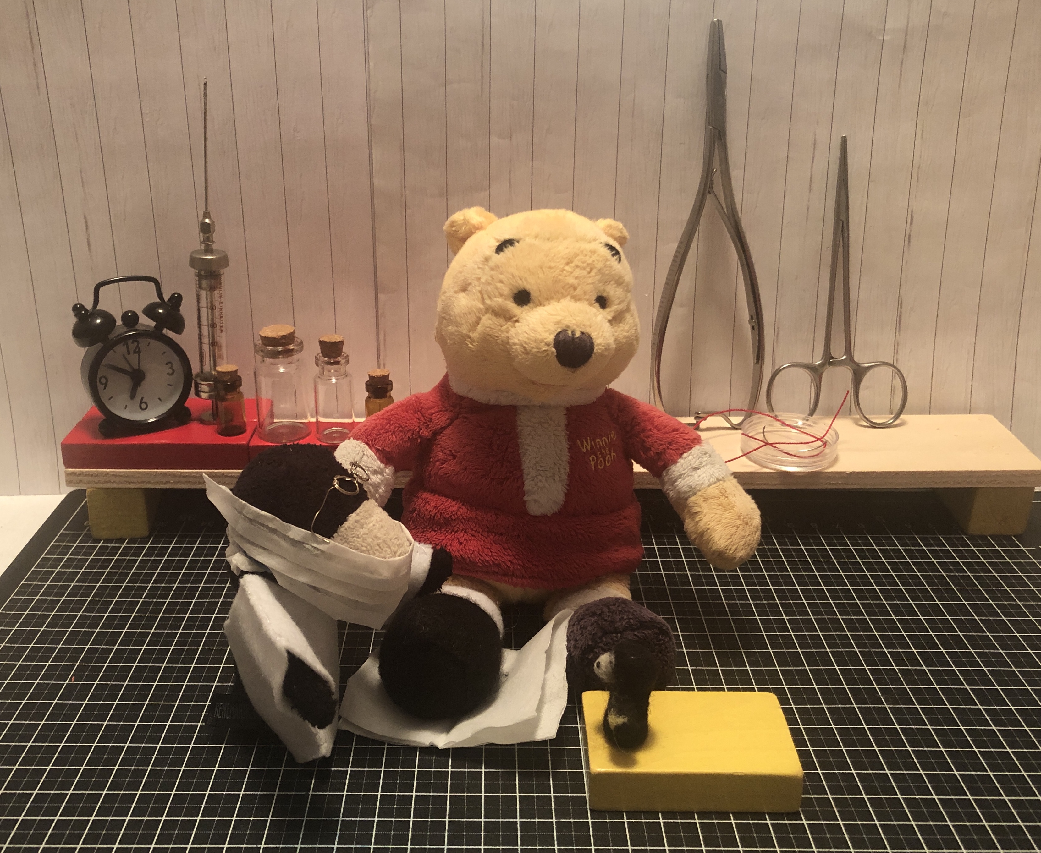 Am 12. Zehenbär[*] des Jahres Zawanzich Zawanzich begegneten wir dem sich damals in einem bedauernswerten Zustand (1) befindlichen Bären. Da die Besitzverhältnisse zunächst ungeklärt waren, erbaten wir uns eine (allerdings extrem kurze) Bedenkzeit, bevor wir ihn adoptierten. Nach erfolgreicher Behandlung durch Dr. Maulwurf'n